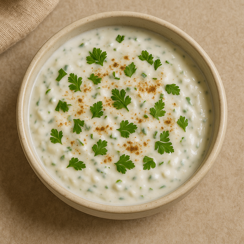yoghurt met komkommer, munt en komijnpoeder